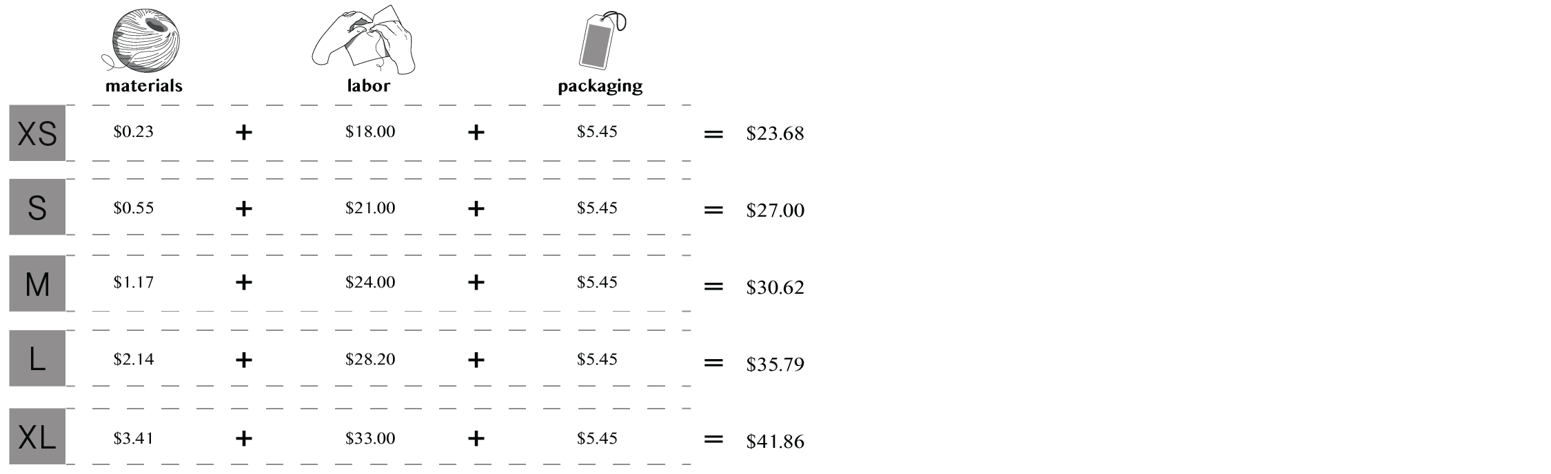 We pay our employees a living wage in New York City, and source ethically manufactured materials. We aim to provide the best possible pricing for the quality of our work, and we want to keep our process transparent for our community. The costing below reflects the materials and labor that go into this particular mend, but it does not include administrative fees, marketing costs, or the overhead costs required to keep our studio up and running and our headquarters team employed. If you have any questions about how we price our products and services, please reach out at hello@theribbitfactory.com.